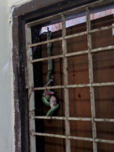 I’ll stick to the pork but, beware, you may unwittingly be getting a little pork brain in your yummy salad. And talking about food and a more serious medical problem, I’d like to mention the poor old snake. Speaking to the Head of the Yangon Tropical Unit who attended a conference that Green Shoots Foundation organised, I learnt that snake-bites are the commonest cause of ward admission to her unit. Up to 15,000 patients are admitted to hospitals around Myanmar annually, mostly resulting from envenomation from cobras and kraits. The cities attract people who in turn throw food away attracting rodents and consequently snakes. One was found in the process of ingesting a rodent in our MAM office recently (picture)